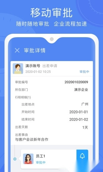 这是一款实用的移动在线办公助手,具备考勤、审批、工作报告及日常管理等多样化OA功能。其自定义审批模块支持灵活的模板配置,而WiFi考勤功能可有效杜绝打卡作弊行为,助力企业轻松完成出勤管理工作。