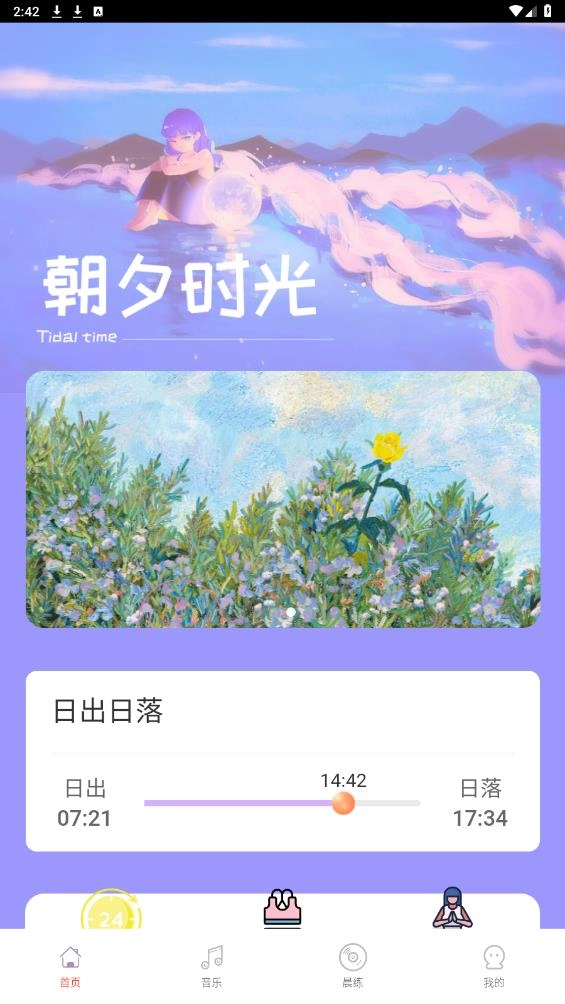 综合健康管理:朝夕时光整合了轻音乐播放、晨练指导、日出日落时间查询、实时天气预报及生活指数展示等多种功能模块,从多个维度关注用户的生活品质。