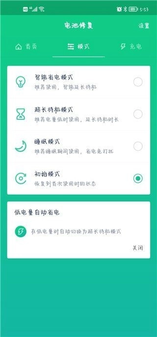 2、软件还为用户提供了多种使用模式,包括智能省电,超长待机,睡眠模式等。