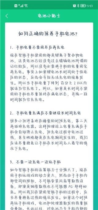 4、软件还为用户提供了电池小贴士,用户可以进行了解如何正确保养手机。