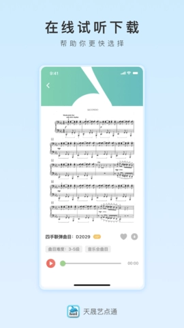 视奏训练是钢琴学习里的一项关键技能,借助这款应用,用户能够锻炼从乐谱上识别音符并即刻弹奏的能力。应用会提供不同难度级别的乐谱供用户练习,助力他们循序渐进地提升视奏水平。除了上述功能外,天晟艺点通还具备其他一些实用的功能。用户可以录制自己弹奏和演唱的音频与视频,便于开展自我评估和分享。应用还设有社区功能,用户能够在其中和其他钢琴爱好者交流互动、分享学习体会。
