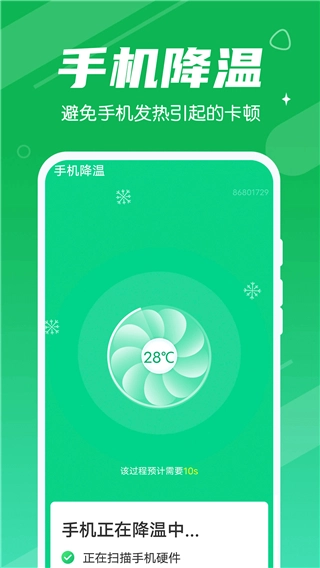 可以监测手机的温度,一旦发现手机过热,可以通过清理内存垃圾和关闭占用资源的应用。
