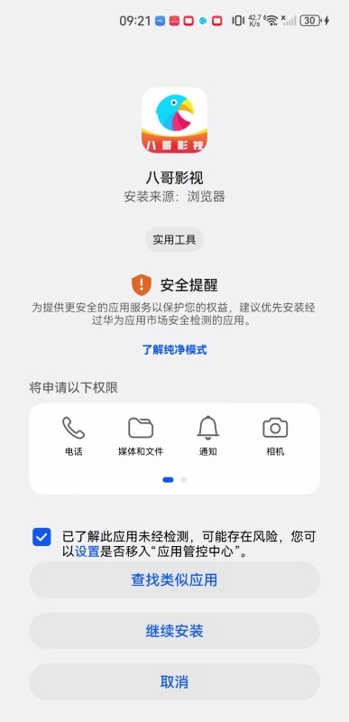 3、点击勾选“已了解此应用未经检测……”,点击“继续安装”。
