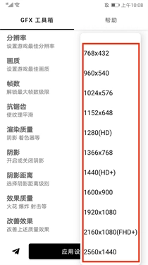 1、GFX工具箱画质可对手机的画质参数进行调整与修改;
