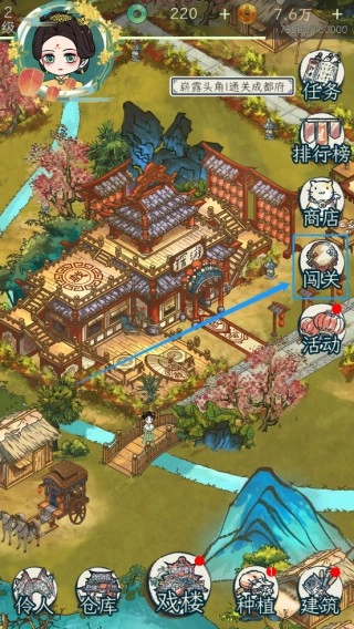 1、点击“闯关”