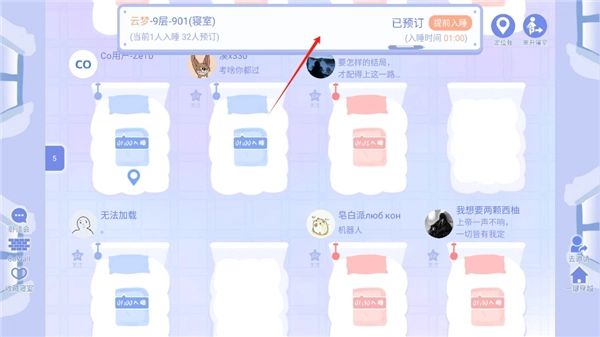 3、点击不同楼层可选择不同的睡眠时间段,向右滑动可选择该时间段不同的寝室