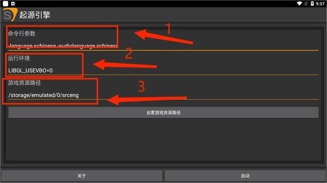2、在首页中设置命令行参数、运行环境、游戏资源路径等等
