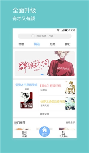 2、强大的分类系统,对每一个作品,都进行了全面的分类管理,方便用户能够快速的找寻到自己喜欢的作品,并且进行线上的追书。