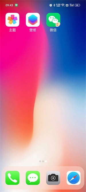 3、然后我们就将壁纸设置到桌面之中了,桌面中有主题和壁纸以及一些常用的应用;
