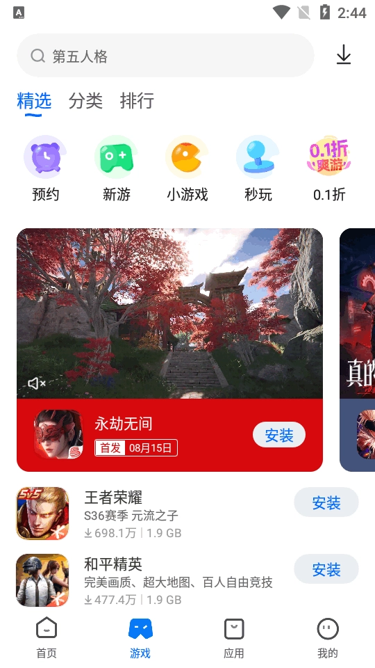 4、【游戏】对火爆、热门游戏进行推荐,用户可一目了然最受欢迎的游戏。