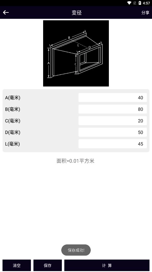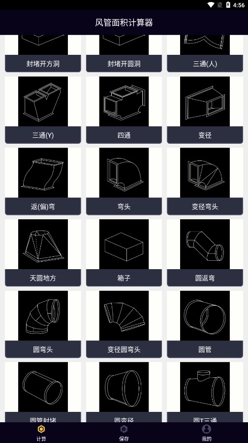 风管面积计算器是一款实用性强的风管计算工具,可适配多种风管类型,包括直管、直管开方洞、四通、弯头、封堵、圆变径等。它能迅速算出风管的面积和体积,便捷高效,且操作简单,无任何广告干扰,计算完成后还能轻松实现数据的导入与保存。