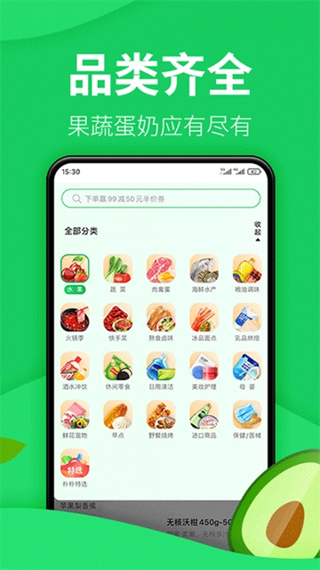 1、服务品类包含水果蔬菜、肉禽蛋奶、海鲜水产、粮油调味、酒水饮料、休闲食品、日用品等。