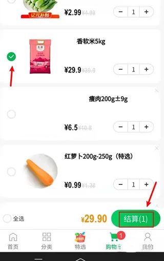 1、在手机上打开朴朴应用,先把需要的商品添加到购物车,之后再点击“购物车”按钮。