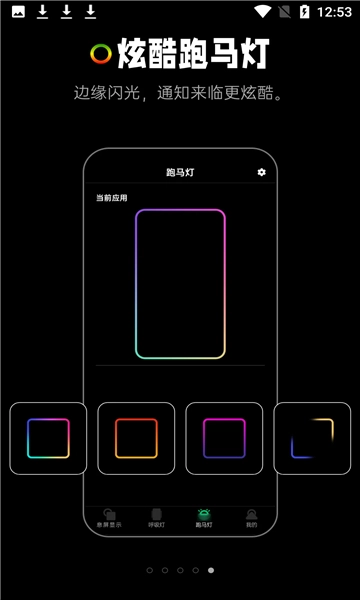 2.自定义选择,让你的手机屏幕更加的灵动,轻松的设置各种跑马灯,展现你的手机背景效果。