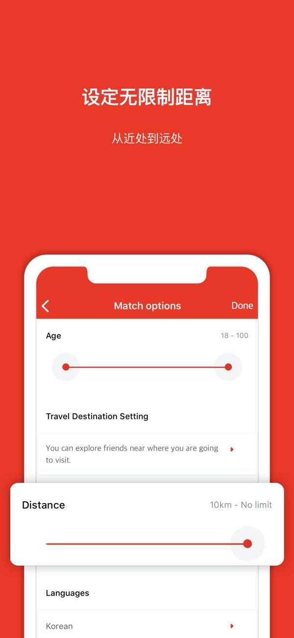 2、设置不同距离范围,在这个范围内找到许多不同的朋友。
