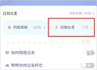 1、打开棉棉月历应用,找到并点击“经期长度”选项。