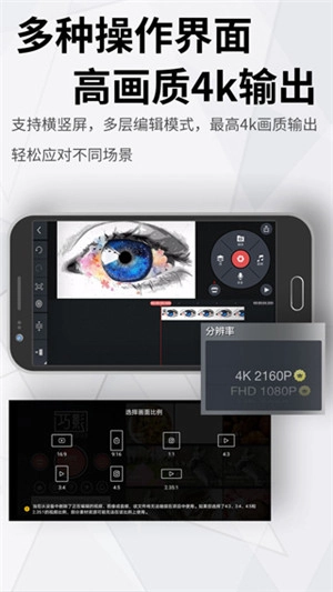 巧影付费解锁的高级版主界面集合了多个实用功能,像多视频层、混合模式、录音旁白、色度键等,用户能借助这些功能发挥创意,制作出独特的视频作品,带来耳目一新的体验。另外,软件还提供1000+热门素材资源,涵盖贴纸、图像、背景音乐等,用户可将这些素材融入视频,让作品更具创意。