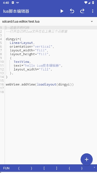 Lua脚本编辑器致力于为用户提供专业的手机Lua脚本测试服务,帮助用户在手机中也可以搞开发。