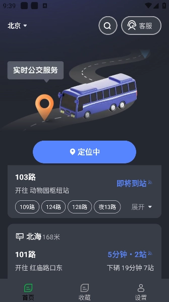 2、定位城市之后,就能够获得最近的公交车信息。
