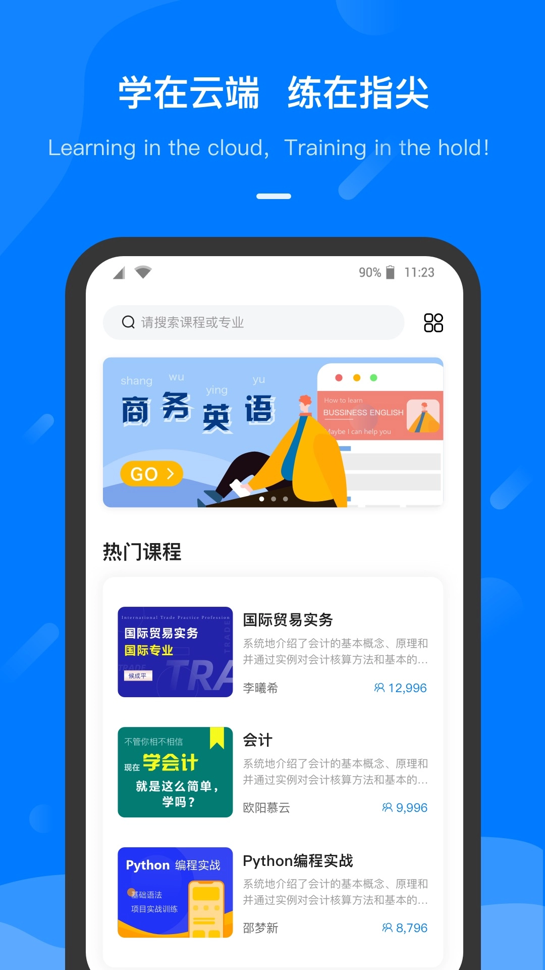 云指课堂课程内容丰富,支持用户在线培训学习。平台上设有大量视频课程,并有专人在线讲解,助力用户掌握各类技能;此外,软件还配备考试功能,能帮助用户更顺利地完成各项技能培训任务。