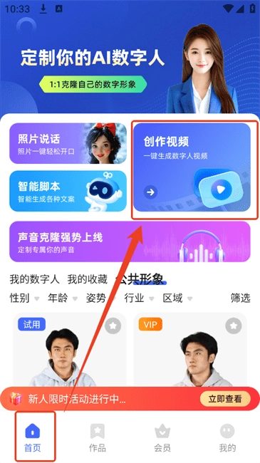 3.登录后点击【首页】的“创作视频”。