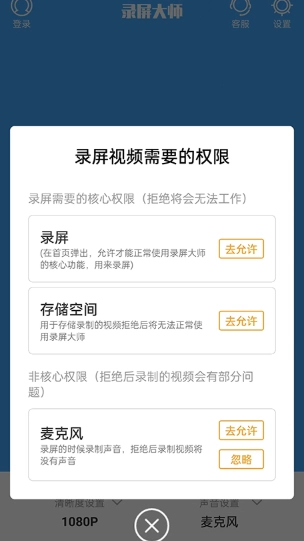 3、点开开始录制,还需要给予录屏权限、存储空间权限、麦克风权限,都给予完毕之后就可以开始录制了
