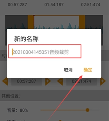 5、输入保存名称,点击确定完成音频裁剪