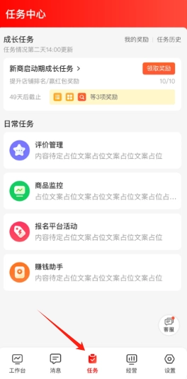 4、平台还任务中心,商家完成了平台的任务和活动还有相应的奖励