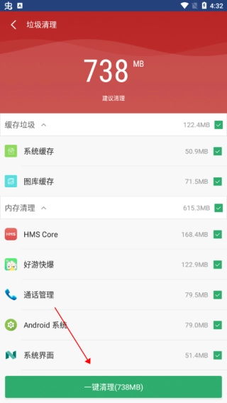 1、一键扫描清理,内存得到加速的智能高效。