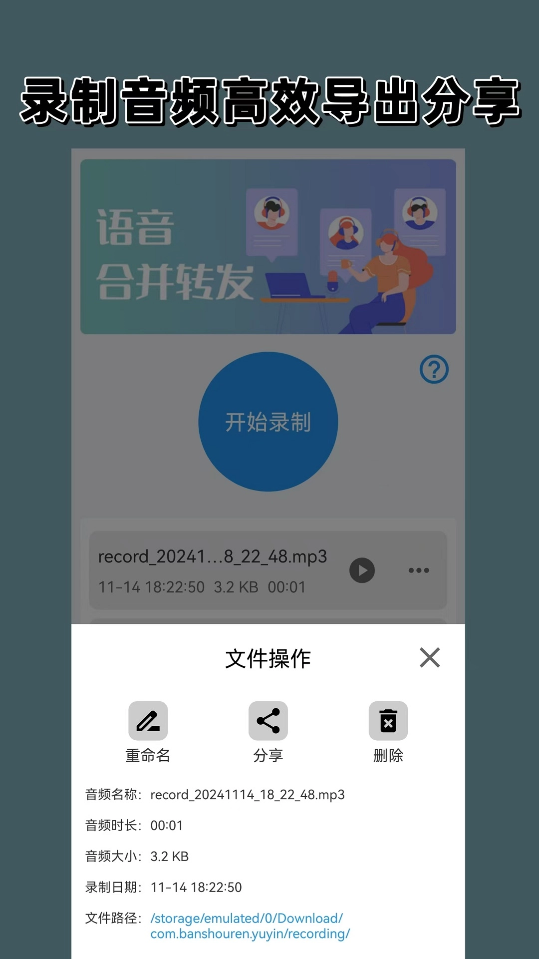 3.支持一键录制各类音频文件并直接导出,助力提升工作与学习效率