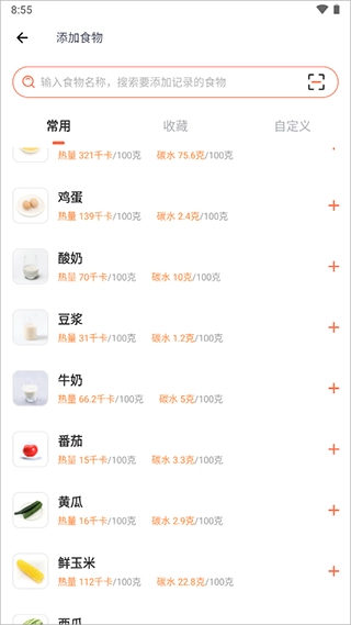 3、接着就选择或搜索自己今天吃的食物