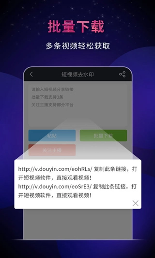 1、支持无水印提取各种短视频,还可以将去除水印的短视频进行批量的