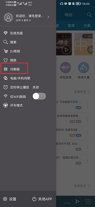 1、启动DJ音乐盒应用,进入首页后点击页面左上角的图标