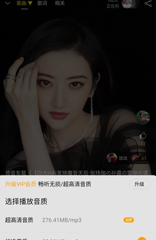 3、点击歌曲进度条旁边的标准字样,可以选择播放歌曲的音质
