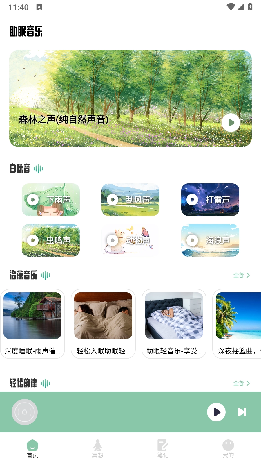 2.在App主界面上,可以看到各种助眠音频的分类,如自然白噪音、轻音乐等,选择适合的助眠音频