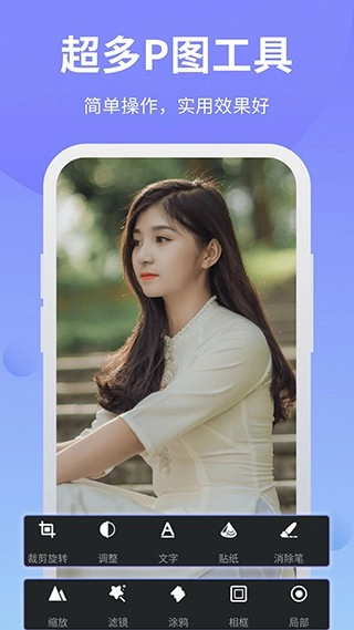 2、还能大大激发用户的个性创作能力。让你从此爱上修图,轻轻松松成为修图大师。