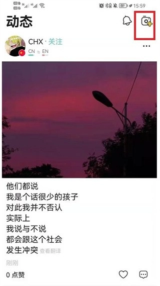 1、启动软件后,点击页面底部的动态图标,具体位置可参考下图示意。