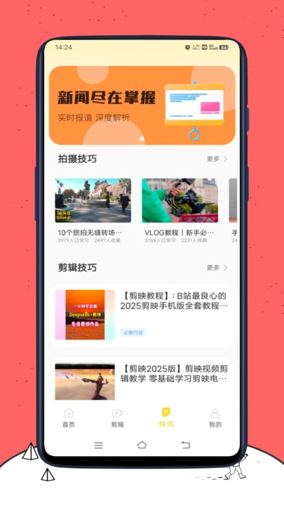 学习功能:设有拍摄技巧、剪辑技巧板块,提供教程和学习内容,助力提升用户的影像创作水平。