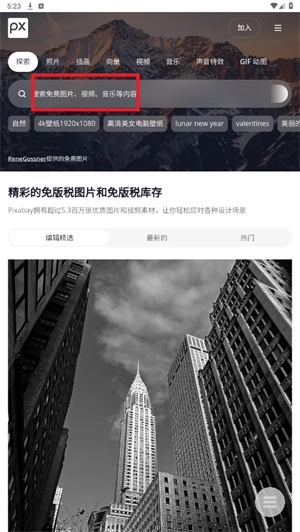 5、即可进入该素材网站首页,在搜索框输入关键词