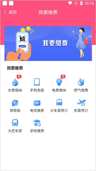 提供在线缴纳水电费、学费、手机充值等十几种便民服务。
