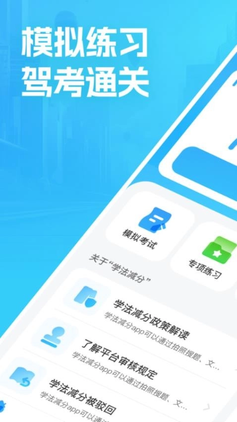 3、及时更新,学法减分,等新规解读,确保学习内容不落伍。模拟考试完全还原真实考场环境。