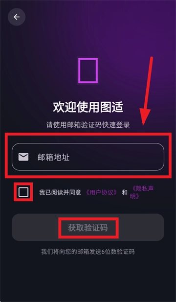 请输入您的邮箱地址,勾选“我已阅读并同意《用户协议》与《隐私声明》”,随后点击“获取验证码”按钮,完成登录操作即可。