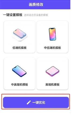 帧界画质工具是一款游戏画质优化软件,适配低端、中低端、中高端等各类机型,支持一键设置功能。用户通过它既能轻松优化游戏画质,也能自定义调整画质参数,让游戏画面更清晰流畅,同时有效减少卡顿与延迟问题,助力提升整体游戏体验。