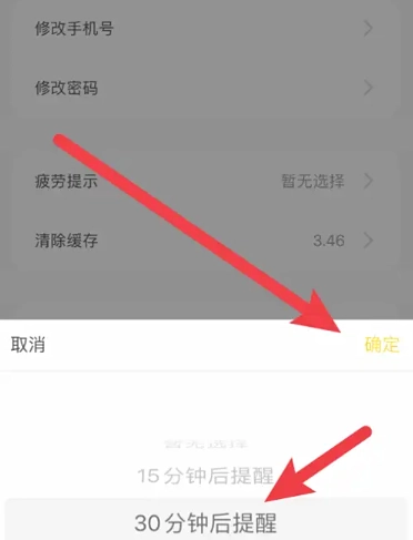 4、点击疲劳提醒选项,并点击确定按钮