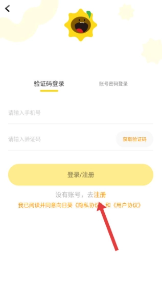 2、进入登录页面,页面提供验证码登录和账号密码登录两种方式,若没有账号,点击页面下方去注册选项,进入注册页面