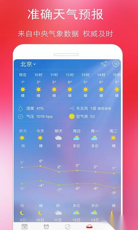 数据来源于中央气象台的雷达数据,具有准确及时的特点,涵盖24小时实时气象雷达信息与连续15日的未来天气预报,覆盖范围包括全国3000个城市以及全球核心城市。