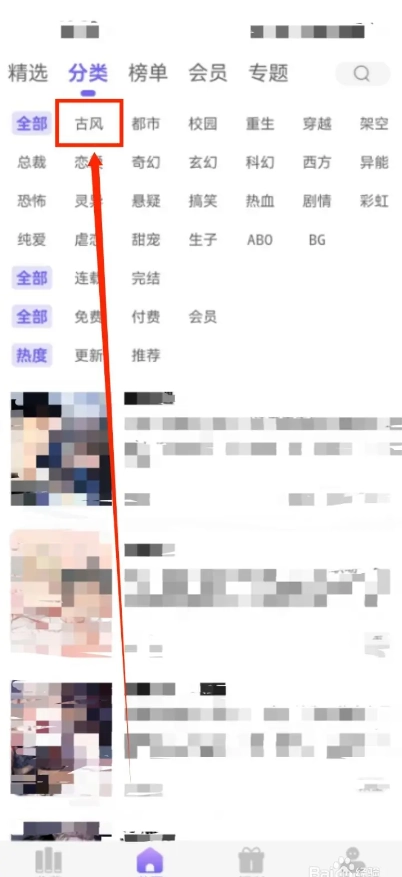 最后再点击页面里的【古风】选项进入后即可查看古风类别漫画!