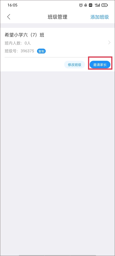3、在班级管理页面你会看到很多已添加的班级信息,点击下方的“邀请家长”。