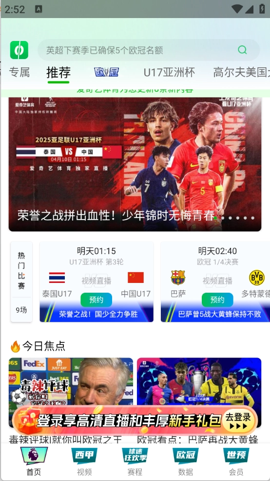 爱奇艺体育是一个可以免费观看各类赛事的平台,这里汇聚了国内外知名的体育赛事资源,涵盖足球、篮球、网球、高尔夫、乒乓球等多个体育项目的直播内容,能让球迷们不错过每一场精彩赛事。而且平台提供高清流畅的画质,为用户带来与众不同的观看体验。