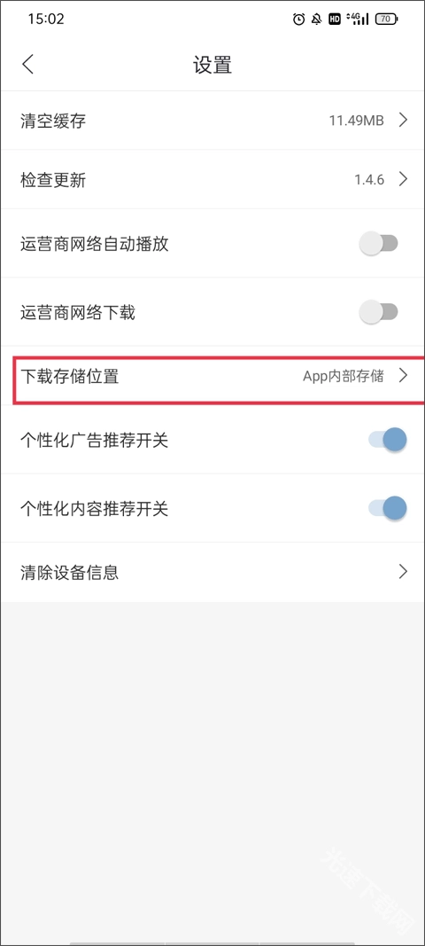 3、软件默认的存储位置是存储空间,如果想将好的视频资源存储到手机内存中,就可以切换成第一个选项:手机存储。